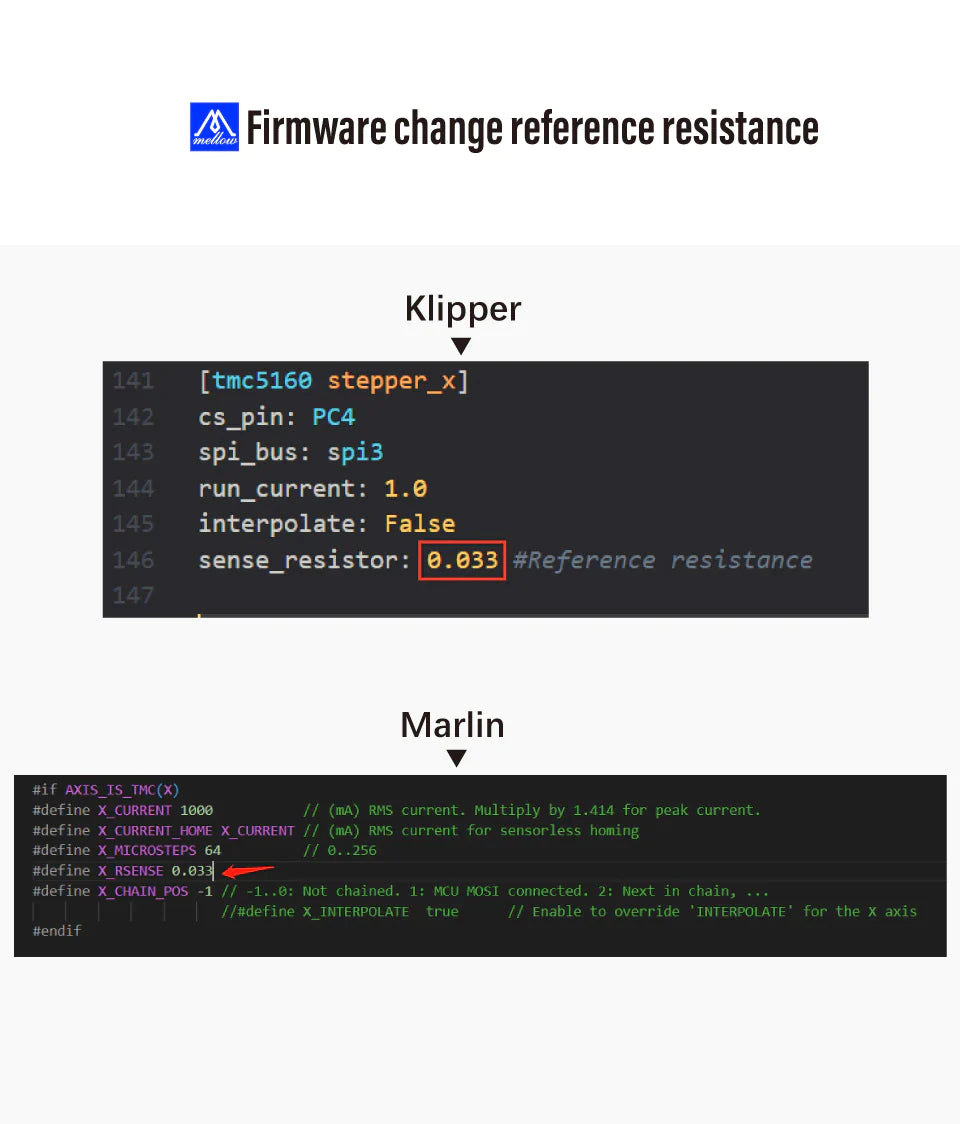 You need to modify the reference resistor of the TMC5160 in the firmware 0.033
